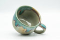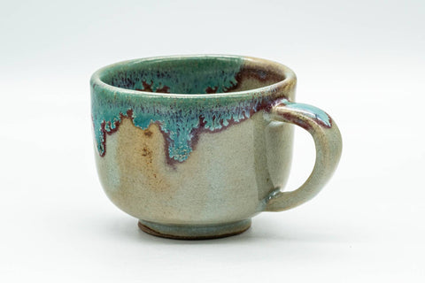 This ushirode (rear-handle) Agano-yaki yunomi (teacup) features a beautiful turquoise drip-glaze.