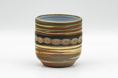 This stunning marbled Tokoname-yaki yunomi (teacups) is made from green, beige, yellow, and red clay kneaded together in the nerikomi (練り込み) technique.
