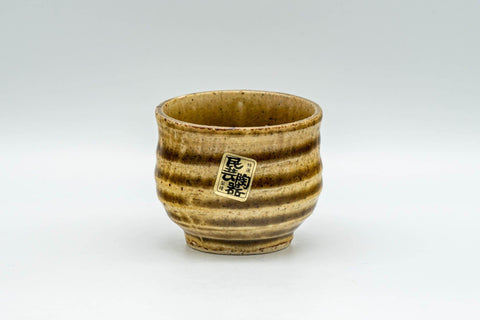 The guinomi (small teacup) features a spiral body with yellow glaze.