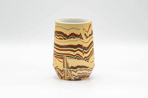 This large Tokoname-yaki yunomi (teacup) features a yellow, red, and green marbled clay and a white inner glaze.