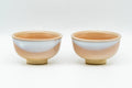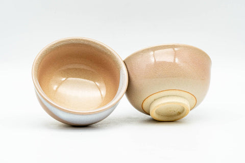 This pair of Hagi-yaki guinomi (small teacups) feature a classic beige and white glaze over thin clay. Made by 天鵬山 Tsubaki Kiln.