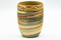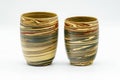 This pair of Tokoname-yaki yunomi (teacups) each feature a green, yellow, and red marbled clay. The marbled effect is produced through the nerikomi technique, which involves layering different coloured clay.