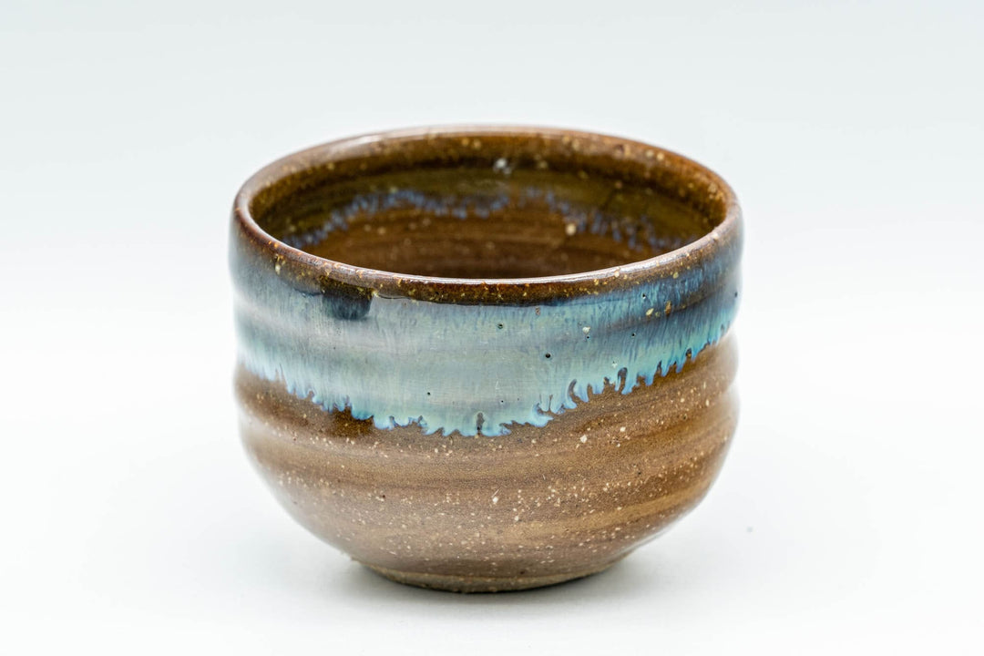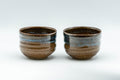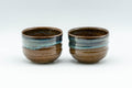 This pair of Agano-yaki guinomi (small cups) features a turquiose enamel over a brown glaze.