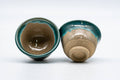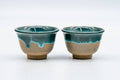 This pair of small Agano-yaki yunomi (teacups) features a classic beige and green drip-glaze.