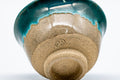 Agano ware is famous for its use of enamels over the glaze. The most well-known of these enamels produces a vibrant blue-green/turquoise dripping effect caused by copper oxide in the enamel.