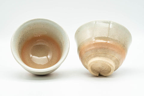 This pair of weathered Hagi-yaki yunomi (teacups) feature a beige glaze that fades towards pink at the base.