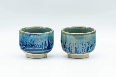 Japanese Teacups - Pair of Blue Drip-Glazed Guinomi - 35ml