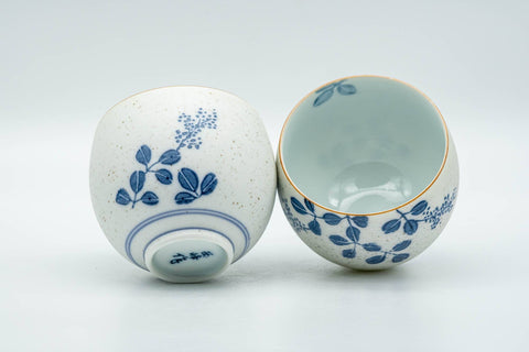 This pair of Arita-yaki yunomi (teacups) features a lovely exterior decorated with blue flowers.