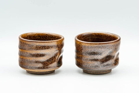 This pair of small yunomi (teacups) feature an elegant brown glaze with thumb indentations.