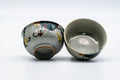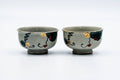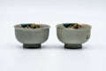 This pair of yunomi (teacups) features a sleek sage green-grey glaze decorated with painted vegetables.