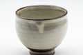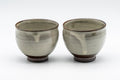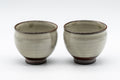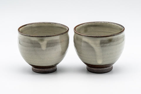 A pair of tenmoku-gata yunomi (teacups) featuring a cream glaze which breaks at the lip to reveal the dark brown stoneware underneath.