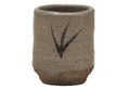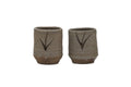 This pair of Karatsu-yaki guinomi (very small teacups) feature a dark beige / gray glaze decorated with a plant motif.
