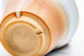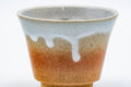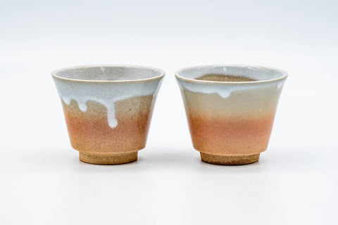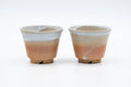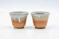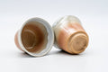 This pair of Hagi-yaki yunomi (teacups) features a brilliant beige, pink, and white drip-glaze.