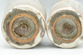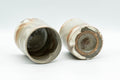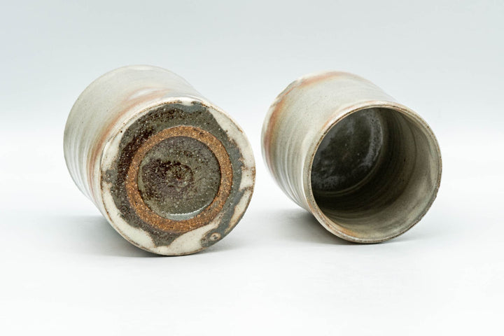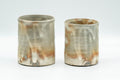 This couple's pair of elegant tsutsu-gata yunomi (teacups) feature a peach and cream glaze with a stunning white overglaze.
