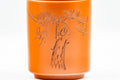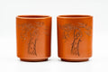 This pair of Tokoname-yaki yunomi (teacups) feature red shudei clay engraved with tree and leaf motifs.