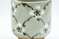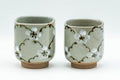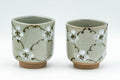 This couples' pair of Obori Soma-yaki yunomi (teacups) feature an elegant celadon glaze decorated with hand-painted flower motifs. Called 'meoto yumomi' in Japanese, couple's pairs of teacups are traditional wedding gifts.