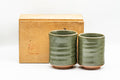 This pair of meoto yunomi (teacups) feature a spiraling clay body and a beautiful emerald glaze.