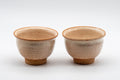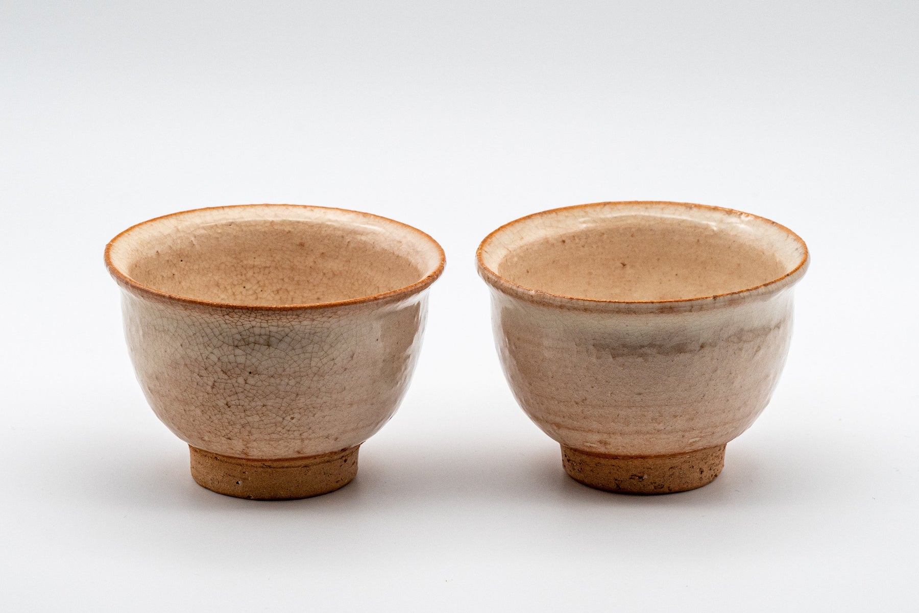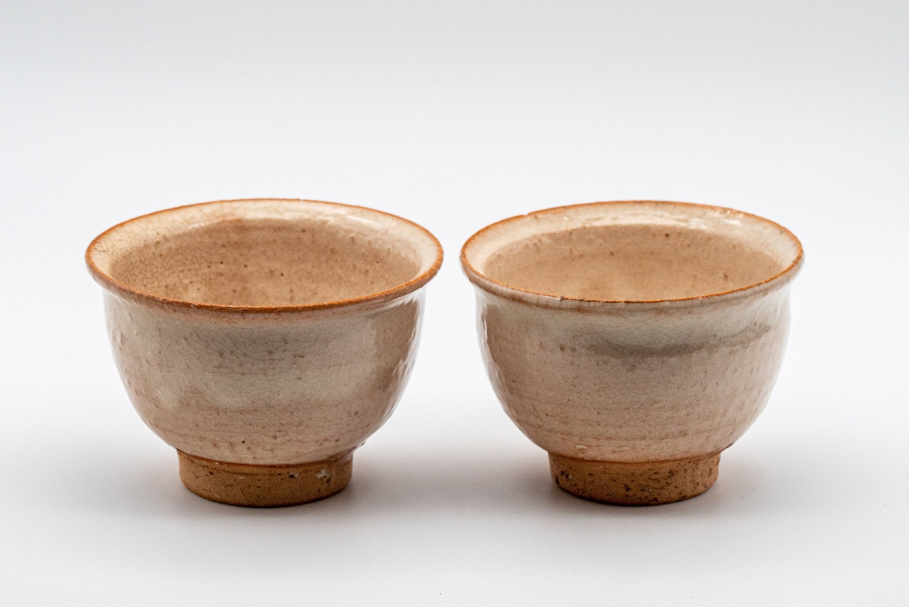 This pair of tulip-shaped Hagi-yaki yunomi (teacups) feature a finely crazed beige glaze.