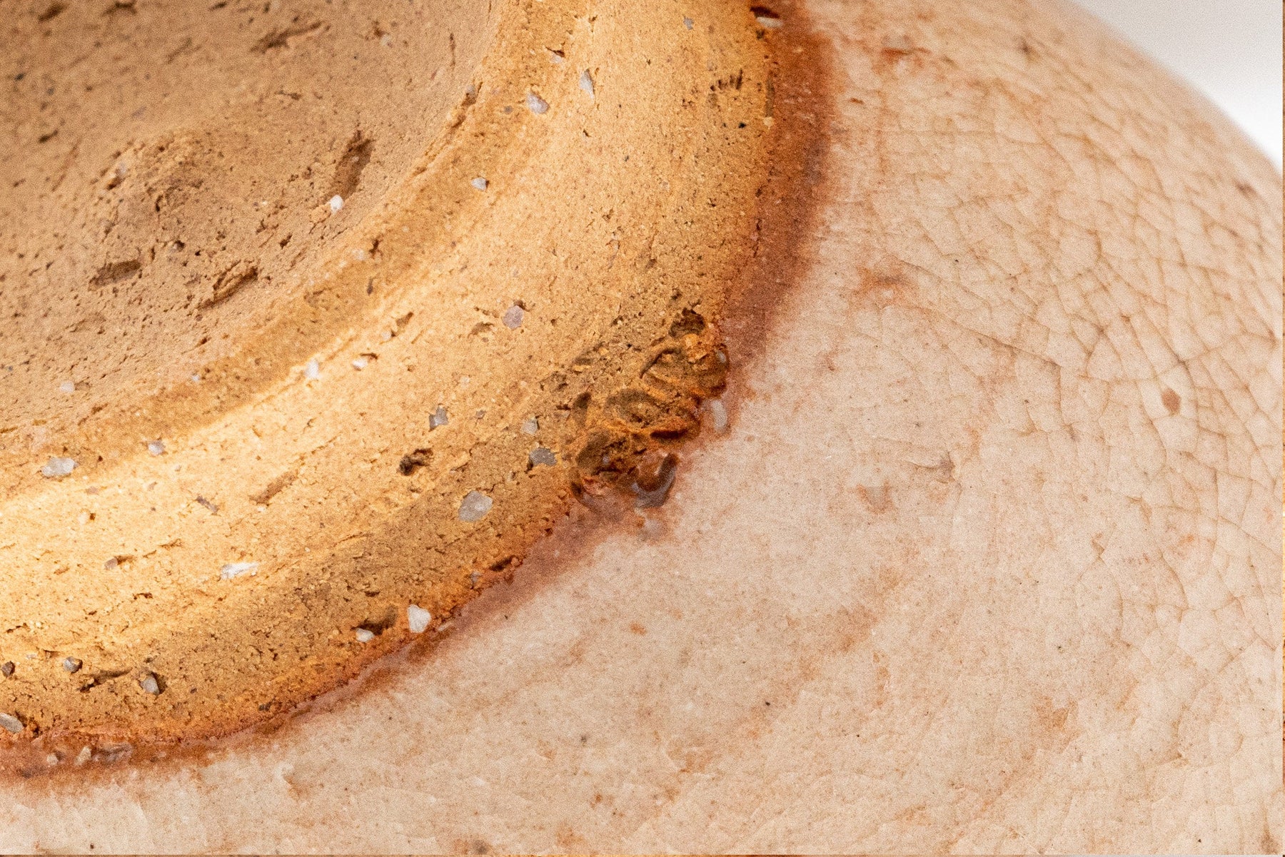Hagi-yaki (萩焼) is a type of Japanese pottery that comes from the town of Hagi in Yamaguchi Prefecture, Japan and dates back over 400 years. Some of the oldest Hagi-yaki pieces have been declared National Treasures of Japan. The natural warm hues of its clay, along with the simple lines of its forms are highly valued within the traditional aesthetics of many tea ceremony schools. Hagi ware is said to improve with age as the tannins in the tea slowly stain the fine cracks in the glaze (called crazing or kan-nyuu), creating a rich texture known as ""nanabake"", or ""the 7 transformations"". Because of this slightly porous nature, some people like to dedicate their Hagi ware to one type of tea, such as sencha, to avoid having other aromas seep into the clay.