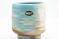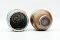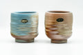 This pair of large yunomi (teacups) each features a textured blue and burnt orange/bronze glaze.