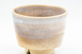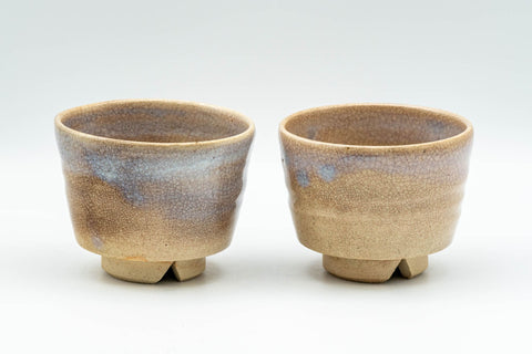 This pair of weathered Asagao-gata/Sori-gata (morning glory/inverted cone shape) Hagi-yaki yunomi (teacup) featuring a warm cream stoneware with grey glazing.
