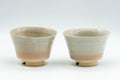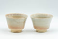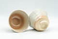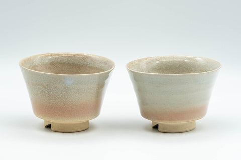 This pair of weathered Asagao-gata/Sori-gata (morning glory/inverted cone shape) Hagi-yaki yunomi (teacups) featuring a beige and peach glaze.