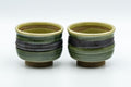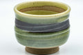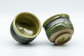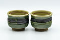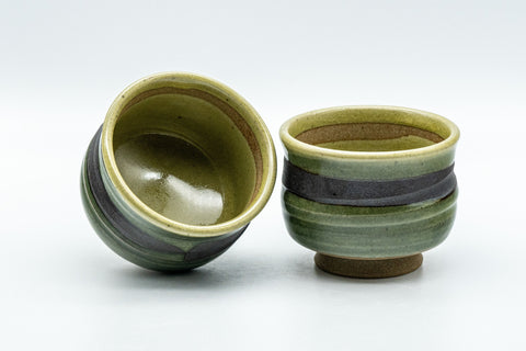 This pair of waisted yunomi (teacups) feature a green glaze with a horizontal black stripe.
