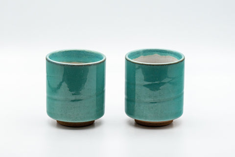 This pair of tsutsu-gata yunomi (teacup) features a brilliant turquoise glazed exterior and a white glazed interior which lets you see the true colour of the tea.