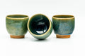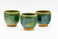 This set of three guinomi (small teacups) feature a stunning green celadon glaze.