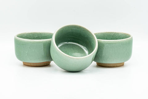 This set of three guinomi (small teacups) feature a beautiful green celadon glaze.