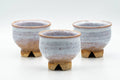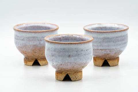 This set of three Hagi-yaki yunomi (teacups) features a milky white glaze over beige stoneware.