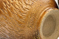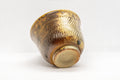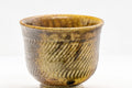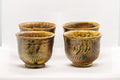 Set of four green and brown senchawan (small teacups ideal for sencha) decorated with tochiri (slashing) designs.