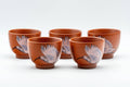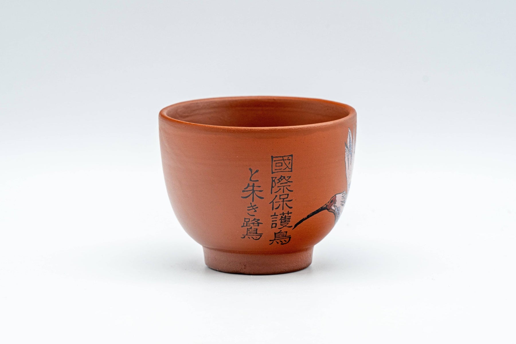 A set of five Tokoname-yaki senchawan (small teacups ideal for sencha) each decorated with a Crested Ibis (called 'Toki' in Japanese), accompanied by the engraving '國際保護 朱鷺 とき' which translates to 'Internationally Protected Bird - Crested Ibis (Toki).