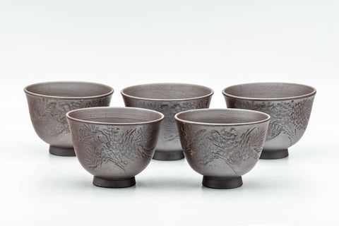 This set of five Banko-yaki yunomi (small teacups) feature engraved floral motifs.