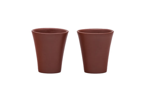 This pair of Tokoname-yaki guinomi (very small teacups) are made from unglazed red shudei clay. Made by 雲仙窯 Unzen Kiln.