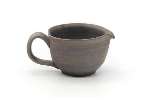 This rear-handled yuzamashi (water cooler) features an unglazed brown-beige clay and a wide opening, providing a large surface area for tea or water to cool quickly.