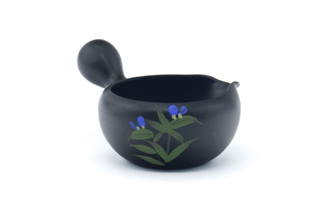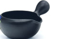 This black kokudei Tokoname-yaki yuzamashi (湯冷まし - water cooler) is used to cool down boiling water to a temperature more suitable for brewing green tea. When poured into a yuzamashi, boiling water cools to roughly 90°C, which then will cool to roughly 80°C when poured into a cold teapot. To cool water further, you can either let it sit in the yuzamashi for longer, or pour it into cups and then into the teapot.