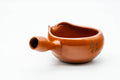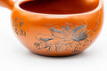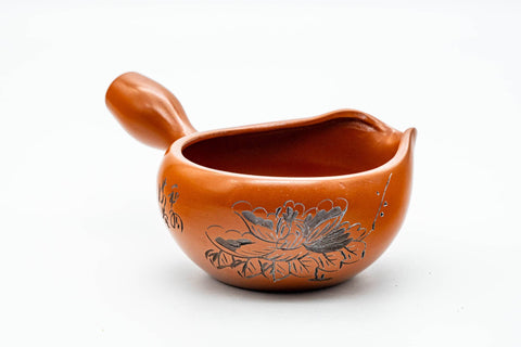 This Tokoname-yaki yuzamashi (water cooler) is made from the iconic red shudei (朱泥) and engraved with a beautiful floral motif.