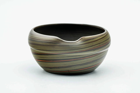 This nerikomi Tokoname-yaki yuzamashi (katakuchi; handle-less water cooler) is perfect for adjusting water temperature when brewing high quality Japanese tea. The stunning marbled effect is produced through the nerikomi technique, which invovles layering different coloured clay.