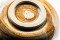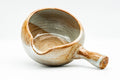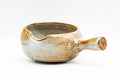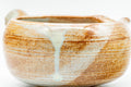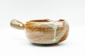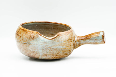 This heavy yuzamashi (water cooler) features and orange and cream hakeme brush glaze. It's perfect for adjusting water temperature when brewing high quality Japanese tea.