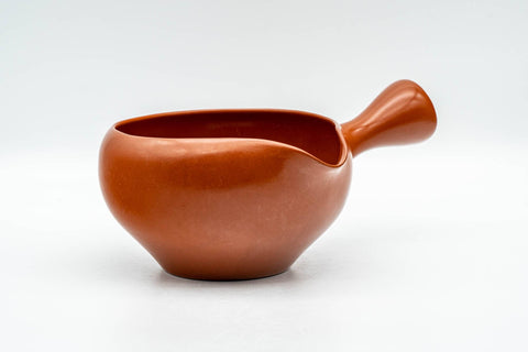 This red shudei Tokoname-yaki clay yuzamashi (water cooler) is perfect for adjusting water temperature when brewing high quality Japanese tea.