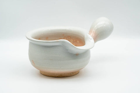 This Hagi-yaki yuzamashi (water cooler) features a wide opening and spout that makes it perfect for cooling down water for brewing green teas or for making multiple servings of matcha. Made by Tsubaki Kiln (椿窯, stamped 天鵬).