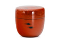 This bright vermillion natsume is accented with black scuff marks in a traditional technique known as negoro (根来). This lacquer natsume consists of multiple layers of urushi lacquer over a plastic core.