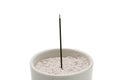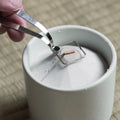 This celadon kōro (incense censer) is designed to be paired with incense ash and tadon charcoal for use in the traditional Japanese way of incense, Kōdō (香道), however, it can also be used to hold and burn incense sticks. Called a kiki-gōro, or te-kōro (聞香炉・手香炉), this style of incense censer has three ‘legs’ or ‘feet’ and a simple cylindrical shape. When filled with ash, it can be used to gently heat kōboku (aromatic woods) using the monkō technique, perfume a room using the soradaki technique, or hold incense sticks and catch their ashes.